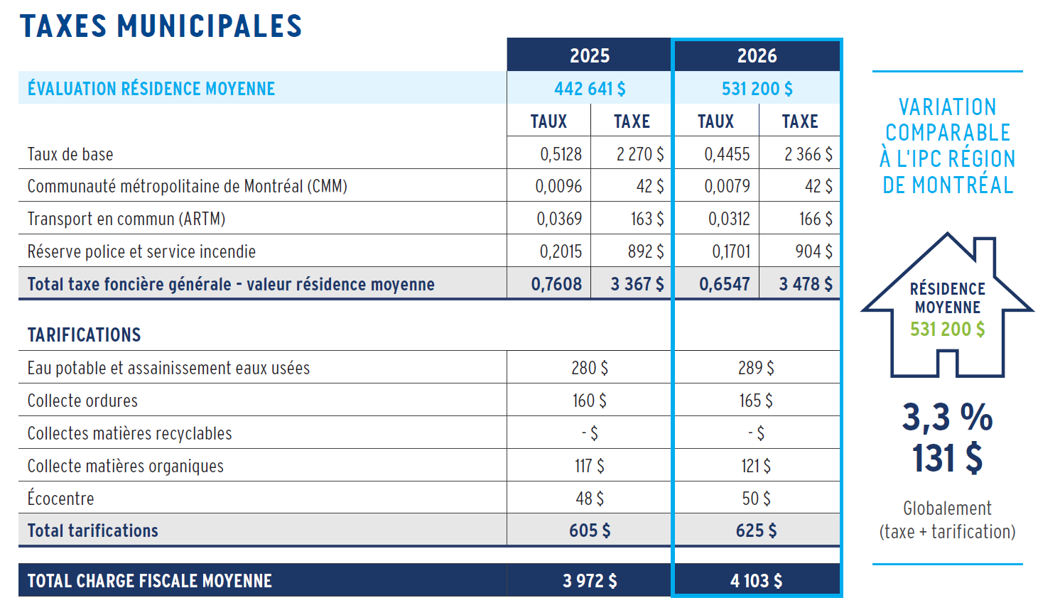 - Hausse moyenne de 3,3 %, équivalent à l'IPC de la région de Montréal en octobre 2025 à 3,3 %