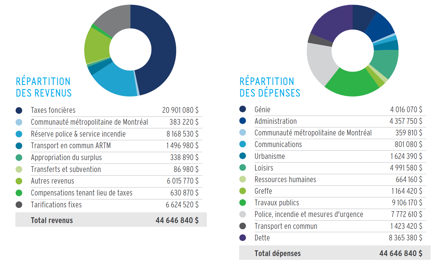 - Budget de 44,65 M$, en hausse de 7,43 %